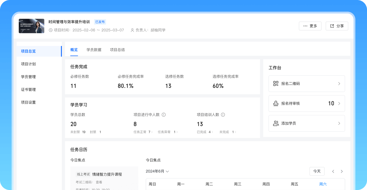 全流程在线化,培训计划执行透明化,管理效率提升100%,确保计划落地